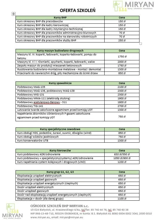 Miryan. Ośrodek Szkoleń BHP