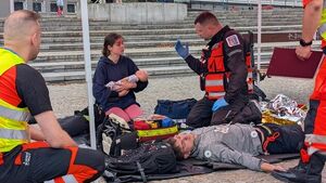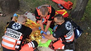 To na szczęście tylko upozorowany wypadek. Jedna z konkurencji, w których zmagały się ekipy w VII Międzynarodowych Mistrzostwach Polski w Ratownictwie Medycznym i Drogowym. To pierwsza tego rodzaju impreza w Białymstoku. W zeszłym roku odbyła się w Olsztynie, a wcześniej w Krakowie. Bezdomna rodzi dziecko w wagonie Dwie konkurencje mistrzostw rozgrywane są na dworcu Białystok Fabryczny. Pierwsza to "Dziecko Rosemary" (każda ma taką filmową nazwę, np. "Kochaj albo rzuć", "Ucieczka z Alcatraz" czy "Dzień świra"). Ratownicy dostają wezwanie do porodu w wagonie ustawionym na bocznicy. Kobieta i dziecko są w stanie krytycznym. Ratownicy sprawdzają, czy dziecko oddycha i odcinają pępowinę. Następnie wsiadamy w starą Warszawę przerobioną na drezynę i jedziemy do innego zaaranżowanego wypadku. - Pracownik kolei został porażony prądem. Jest nieprzytomny, ma zaburzenia oddychania - opowiada Joanna Antoniuk, która sędziuje to zadanie. - Zespoły muszą zabezpieczyć podstawowe czynności życiowe. Przede wszystkim zaintubować chorego, ponieważ ma porażone drogi oddechowe. Muszą też zabezpieczyć go kołnierzem i zastosować płynoterapię - mówi. Nie bać się pomagać - Przygotowaliśmy 11 zadań, w których upozorowaliśmy wydarzenia losowe. Są to różnorodne stany zagrożenia życia. Wszystkie sytuacje mogą zdarzyć się naprawdę - wyjaśnia Jan Mirucki, rzecznik Wojewódzkiej Stacji Pogotowia Ratunkowego w Białymstoku, która zorganizowała mistrzostwa. - Zawodnicy nie wiedzą, co oceniają sędziowie. Mogą zwracać uwagę na to, jak ratownicy pracują jako zespół, jak dawkują leki lub jak współpracują z innymi służbami - dodaje. W zawodach uczestniczyło 69 ekip z Polski i zagranicy, w tym 6 m.in. z Litwy, Ukrainy i Turcji. Pogotowie białostockie reprezentowały dwie załogi. Przez cały piątek i sobotę zawodnicy byli wzywani do wypadków na terenie miasta i musieli wykazać się swoimi umiejętnościami. Najlepsi okazali się strażacy z Krakowa. Jednak mistrzostwa nie służyły jedynie rywalizacji. Chodziło również o przełamanie lęku przed udzielaniem pomocy innym. Wszyscy białostoczanie mogli czynnie uczestniczyć w imprezie. Na placu miejskim przy ratuszu stanął namiot pogotowia, w którym ratownicy szkolili mieszkańców w zakresie pierwszej pomocy. Można było oddać krew. Były też konkursy i pokazy, m.in. kolumna ambulansów przejechała przez miasto na sygnale. Czterodniowe mistrzostwa zakończył festyn rodzinny na placu przed Teatrem Dramatycznym.