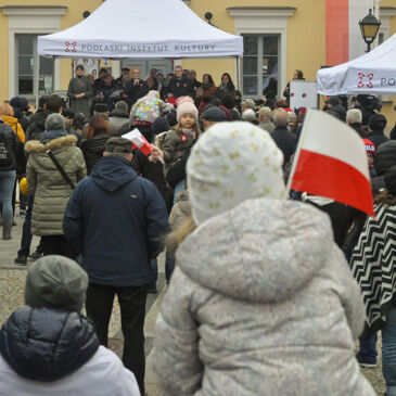 Patriotyczne śpiewanie na Rynku Kościuszki