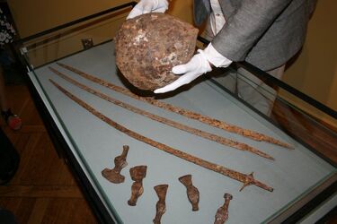 Celnicy z przejścia granicznego w Bobrownikach jakiś czas temu w bagażu jednej z podróżujących par odkryli niecodzienne znalezisko - pochodzące z czasów średniowiecznych szable, czekany i hełm, które przemytnicy chcieli wywieźć z Polski. Przedmioty zostały zarekwirowane, a po przeprowadzeniu postępowania sądowego, celnicy przekazali je nieodpłatnie na rzecz Muzeum Podlaskiego w Białymstoku. - Jest to zbiór bardzo cenny. Na razie nie był on poddawany żadnym zabiegom konserwatorskim. Z ekspertyz jednak wiemy, że krąg kulturowy, z którego pochodzi to tereny Białorusi lub Ukrainy, chociaż może być też z Bułgarii. Znaleziska są datowane na IX-XIII wiek - mówi dyrektor Muzeum Podlaskiego Andrzej Lechowski. Eksponaty będą musiały teraz przejść odnowę konserwatorską i dopiero potem trafią na wystawę w muzeum. Trzeba jednak podkreślić, że wykopanie ich "na dziko" pozbawiło naukowców możliwości ustalenia wielu istotnych szczegółów. - Eksponaty w sposób istotny uzupełnią naszą kolekcję, chociaż pełną wartość naukową znaleziska archeologiczne mają wówczas, kiedy zostają pozyskane są z całym bagażem naukowym - interpretacją warstwy archeologicznej, kontekstem kulturowym. Dopiero wtedy eksponaty zaczynają nam opowiadać historię ludzi, do których należały - dodaje Andrzej Lechowski. W poprzednim tygodniu celnicy udaremnili kolejny przemyt. Tym razem przechwycili 680 rosyjskich monet z XVIII wieku i 40 sztuk biżuterii z epoki brązu. Co ciekawe, przewieźć przez granicę próbowała go ta sama 62-letnia kobieta, która została zatrzymana ze średniowiecznym uzbrojeniem. Za poprzednią próbę została ukarana grzywną, ale tym razem sąd może zdecydować o wyższej karze.
