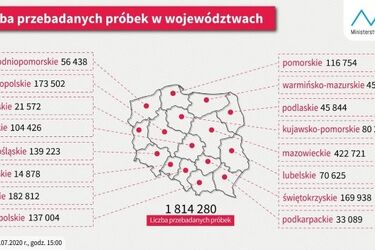 U nas mniej testów niż w kraju W ciągu ostatniej doby w całej Polsce wykonano 25,3 tys. testów w kierunku koronawirusa, z tego 503 w województwie podlaskim. Od początku epidemii zrobiono ich już w sumie ponad 1,86 mln badając ponad 1,64 mln osób, czyli nieco ponad 4% społeczeństwa. W województwie podlaskim ten wskaźnik jest niższy. Dotąd testy wykonano około 3,5% Podlasianom. Także liczba wszystkich wykonanych testów w województwie podlaskim jest niższa niż średnia ogólnopolska. Obecnie na milion Polaków wychodzi 48,62 tys. testów, natomiast na milion Podlasian - 37,88 tys. To dziesiąte miejsce ze wszystkich 16 województw. Mniej niż w Podlaskiem testów wykonuje się w województwach: zachodniopomorskim, lubelskim, warmińsko-mazurskim, lubuskim, podkarpackim. Listę zamyka województwo opolskie, gdzie zrobiono dotąd tylko niespełna 15 tys. badań. Daje to 13,9 tys. w przeliczeniu na milion mieszkańców tego regionu. Najwięcej testów w Świętokrzyskiem Zaskakujące jest, że na największą skalę testuje się w województwie świętokrzyskim, pod żadnym względem niewyróżniającym się w przebiegu epidemii. W Świętokrzyskiem na milion mieszkańców zrobiono aż 130 tys. testów. To ponad trzy razy więcej niż w Podlaskiem, podczas, gdy liczba zachorowań jest tam mniejsza niż w naszym regionie. Kolejne pod względem liczby testów jest województwo mazowieckie - 82,64 tys. testów na milion mieszkańców. Tam liczba zarażeń jest duża, stamtąd też pochodzi większość polskich prominentów, których - o czym wielokrotnie donoszono - testuje się często. Na Śląsku jak na Podlasiu W województwie śląskim, gdzie liczba zarażeń jest kilkukrotnie wyższa niż w innych regionach i cały czas przybywa tam najwięcej nowych przypadków, testuje się tylko minimalnie częściej niż w podlaskim. Na Śląsku poziom przebadania pod kątem koronawirusa wynosi obecnie 38,34 tys. testów na milion mieszkańców. WOJEWÓDZTWO - LICZBA TESTÓW - LICZBA TESTÓW NA MILION MIESZKAŃCÓW świętokrzyskie - 169 938 - 130,52 tys. mazowieckie - 422 721 - 82,64 tys. pomorskie - 116 754 - 53,75 tys. wielkopolskie - 173 502 - 51,87 tys. dolnośląskie - 139 223 - 47,81 tys. małopolskie - 137 004 - 42,52 tys. łódzkie - 104 426 - 39,73 tys. kujawsko-pomorskie - 80 281 - 38,82 tys. śląskie - 182 812 - 38,34 tys. podlaskie - 45 844 - 37,88 tys. zachodniopomorskie - 56 438 - 33,24 tys. lubelskie - 70 625 - 32,01 tys. warmińsko-mazurskie - 45 173 - 31,65 tys. lubuskie - 21 572 - 21,4 tys. podkarpackie - 33 089 - 15,75 tys. opolskie - 14 878 - 13,9 tys. /Stan na 13 lipca, na godz. 15.00. Dane MZ i GUS, obliczenia własne/ Wg oficjalnych danych na całym świecie na COVID-19 dotąd zachorowało 13,3 mln osób. 578 tys. z tej liczby zmarło.